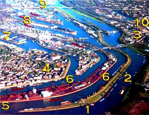 in Ruhrort mit einem Durchstich zum Inselhafen und eine Verbindung zur